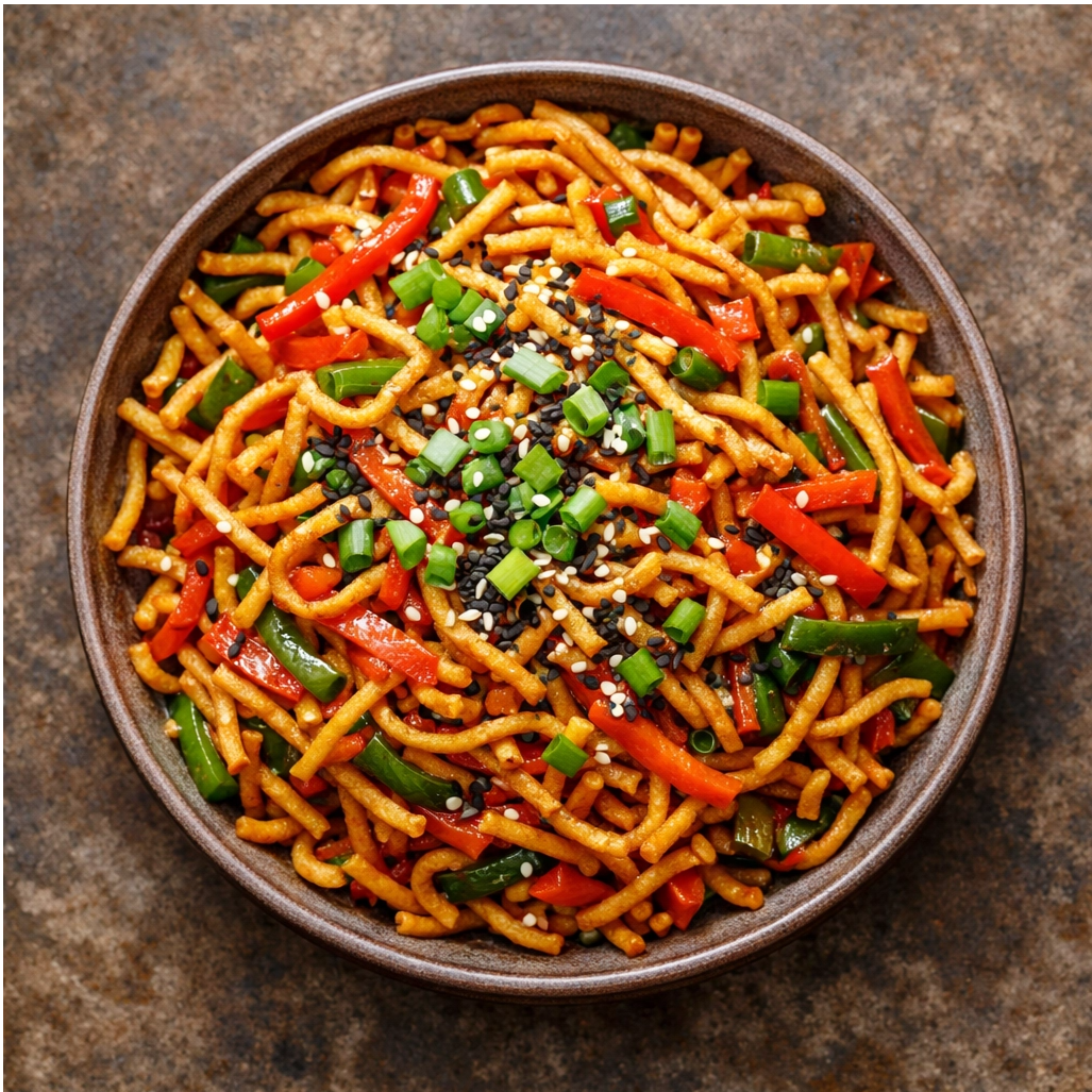 Crispy noodles tossed with vegetables & sweet, spicy sauces