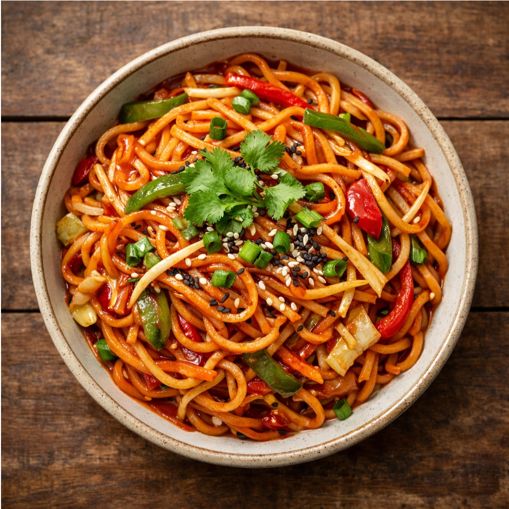 Spicy Schezwan noodles